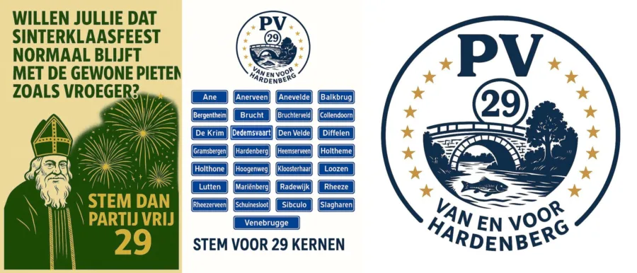 Het getal 29 staat voor het aantal kernen in de gemeente Hardenberg. De lokale partij is al enige tijd actief op social media en deelt daarbij standpunten. De initiatiefnemers zeggen voor een nuchter en krachtig geluid in de politiek te willen zorgen. De speerpunten zijn onder meer: Geen nieuwe azc’s, meer veiligheid (meer zichtbare wijkagenten), dierenwelzijn, stoppen met zonneparken en windmolens, betere busverbindingen tussen de kernen en strengere controle op voedselbanken.